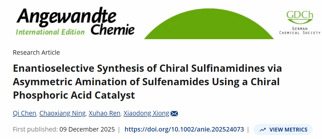 Article link:Enantioselective Synthesis of Chiral Sulfinamidines via Asymmetric Amination of Sulfenamides Using a Chiral Phosphoric Acid Catalyst - Chen - 2026 - Angewandte Chemie International Edition - Wiley Online Library