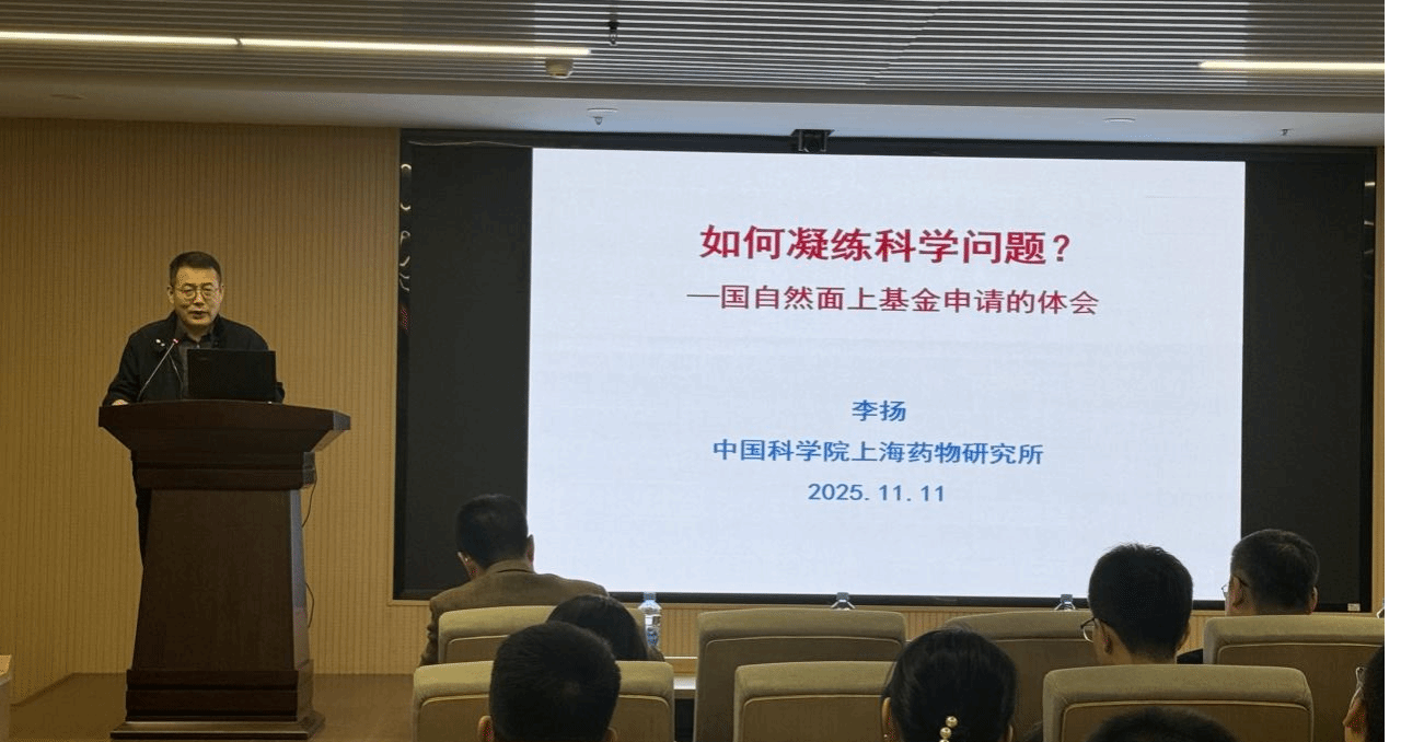 为切实推进国家自然科学基金申报工作,南昌大学药学院于11月11日上午在医学科创楼举办“药学创新论坛(第十三期)暨2026年度国家自然科学基金申报辅导会”。此次会议特邀中国科学院上海药物研究所李扬研究员和中国药科大学杨鹏教授担任主讲嘉宾,会议由张汉霆院长主持,药学院、基础医学院、附属医院、医学科学研究院等百余名师生参加会议。
