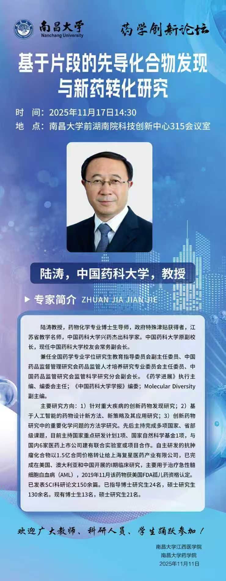 药学院品牌学术活动-药学创新论坛第十四期预告